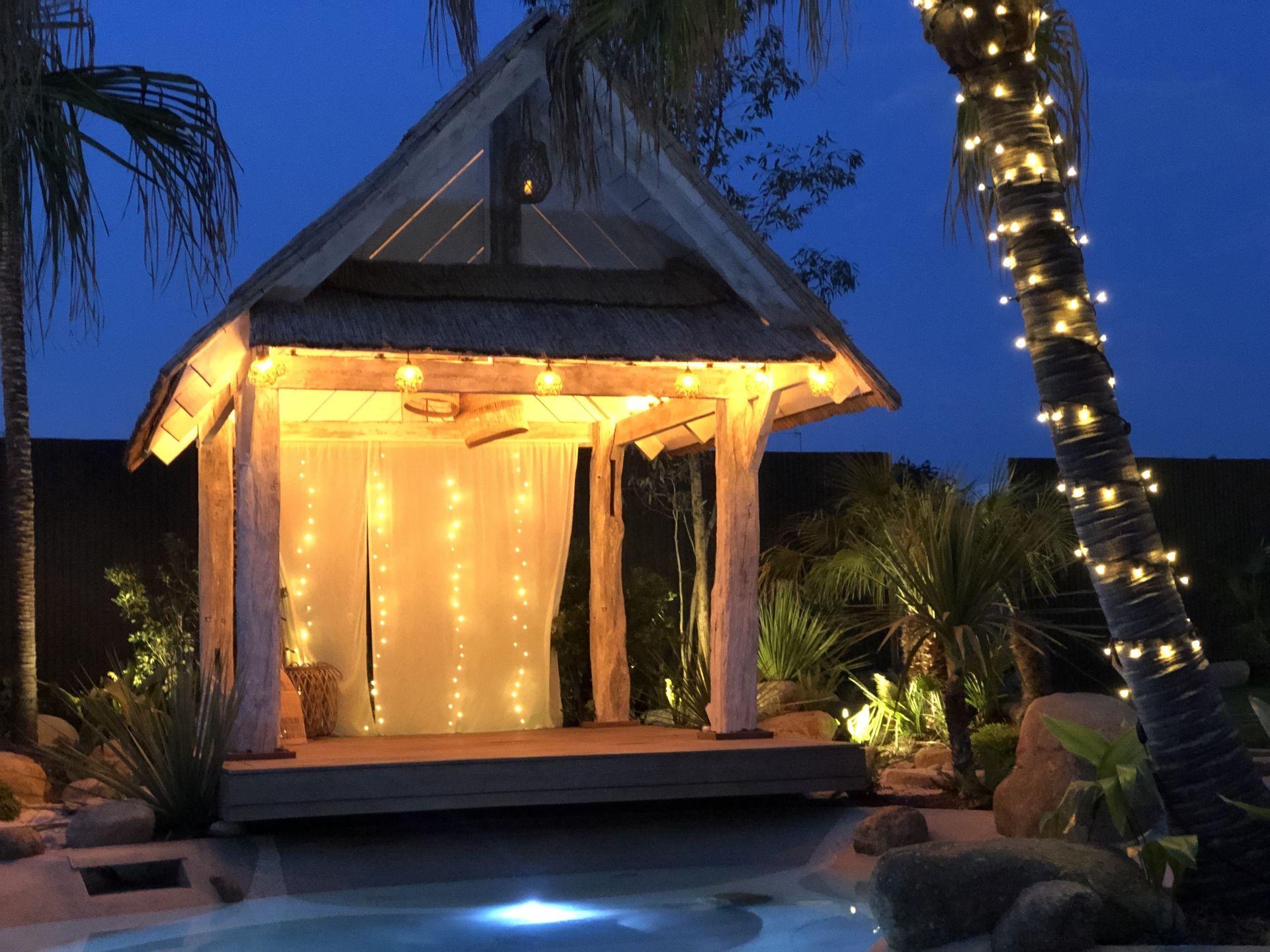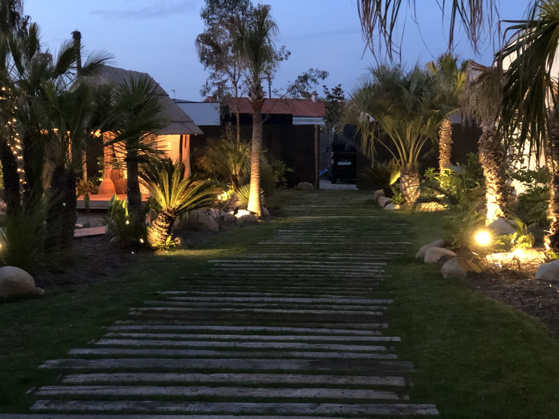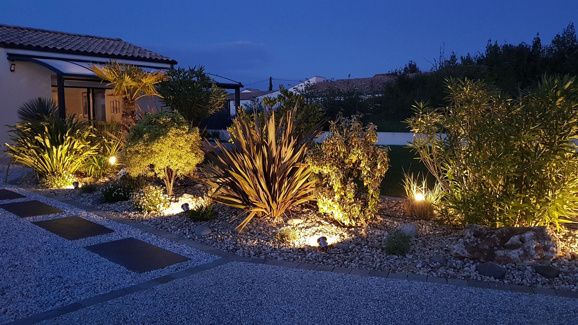 Il est trés difficile de réaliser de belles photos d'éclairages de jardins. Pour faire de belles photos, il ne faut pas attendre que la nuit s'installe, les photos doivent être prise à la tombée de la nuit avant la disparition totale du soleil. Ainsi l'objectif de votre appareil photo sera capable s'ajuster pour de très beau rendu. Si la nuit est trop noire il sera impossible d'obtenir des photos nettes.