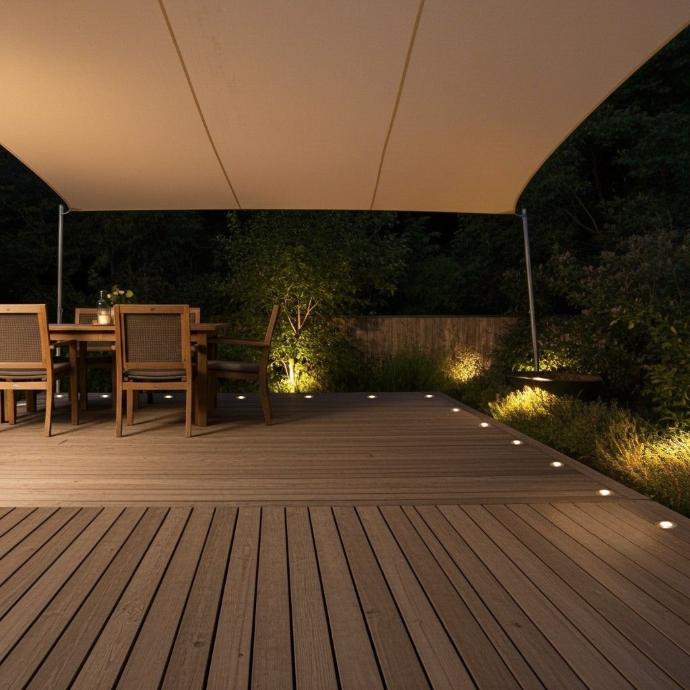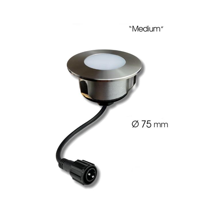 Cette série est spécialement conçue pour s'intégrer à des plancher en bois ou composite, il est même possible de placer ces produits dans des dalles sur plots. Les produits sont étudiés pour se clipper dans des plancher compris entre 16 et 28 mm . Ces produits sont en 230V, leur haut niveau de conformité (IP67 et Class II) permet de les positionner à 1 cm de la baignoire (en intérieur). En revanche pour l'extérieur la norme impose une distance minimum de 2m entre les zone de baignade et les produits. Dans cette zone de 2m, nous vous recommandons l'utilisation de produits 12V et 24V (par exemple bandeaux LED).